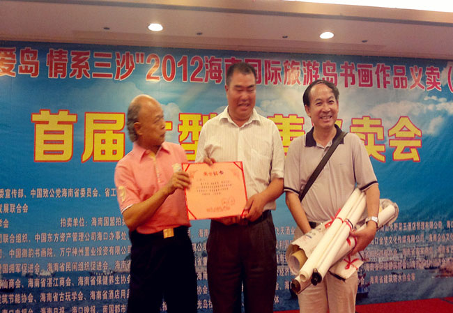 8月22日,海南省贵州商会参与联办的“爱国爱岛情系三沙”—2012海南国际旅游岛书画作品义卖会,在海口市海南颐康大酒店隆重举行。中国著名书画艺术家“京城六马”——王翰尊、张瑞祥、陈富宽、周克民、胡建雄、贾建国,中国著名书画艺术家张宝声及海南省近40位画家、书法家等均亲临会场奉献书画作品参与义卖。参加义卖会的有海南各类企事业单位、各类民间社会团体、新闻媒体等各界人士约200多人。海南省贵州商会副会长、海南文昌大永泉建材责任有限公司总经理王朝江,秘书长周绍兴,副秘书长间办公室主任郑德刚,副秘书长、海南跨海宜居实业有限公司董事长刘建飞,副秘书长、海南天艺零捌玖捌酒店管理有限公司总经理王淞等参加了义卖会。