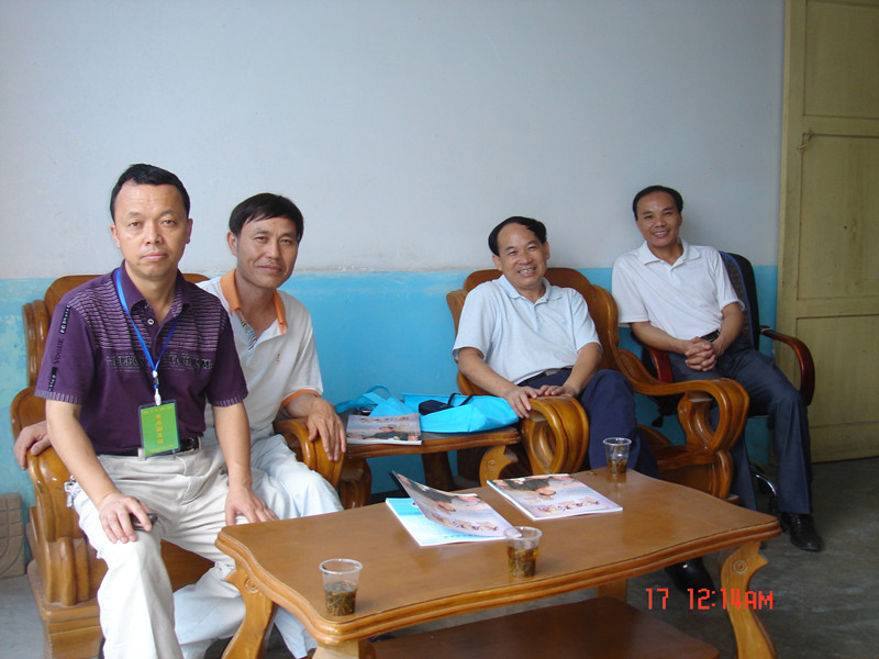 2011年6月14日,周绍兴秘书长到贵州省麻江县下司中学看望受助学生时与该校文朝永校长(左一)等会谈