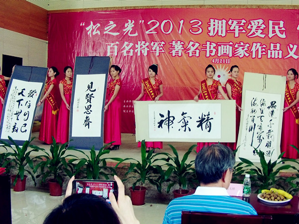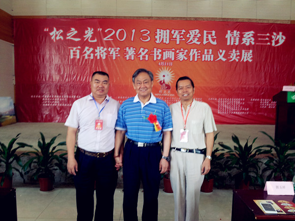 2013年4月21日,位于海口市蓝天路的锦鸿温泉花园酒店四楼会议厅,松之光2013拥军爱民情系三沙——百名将军、著名书画家作品义卖展在这里举行。中国人民解放军济南军区原副司令兼济南军区空军司令(中将)、中国将军书画研究院名誉院长、中国当代美术家协会副主席、中国党建画院副院长郭玉祥,国际美术家联合会主席、国际艺术品资质评审官、中国书画研究院副院长张文祥,(两位同为本次参拍作品作者)亲临会场参加义卖活动;奉献本次参拍作品的其他部分著名书画家也到会参加了义卖活动。参加义卖活动的还有,海南政界一些老领导和艺术界许多知名人士。香港著名影星张敏到现场亮相,为义卖助阵。
